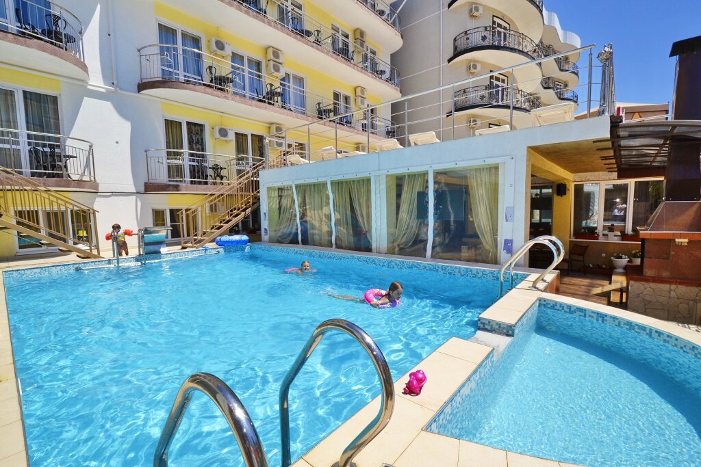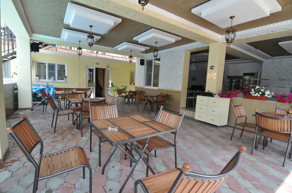 Гостевой дом «Афина» предлагает комфортное размещение. Есть бесплатный Wi-Fi, кафе с трёхразовым питанием, открытый и крытый бассейны. На территории — детская площадка с батутом, качелями и лазалками. Предоставляются услуги прачечной, химчистки и глажки. Возможна парковка и организация трансфера. Размещение с животными — за дополнительную плату. До моря можно дойти за 8–10 минут. Рядом — магазины и развлечения. Недалеко находятся кафе и рестораны: «Сытый грек Таверна» с европейской и греческой кухней, «Сифудо Кафе» с японской и европейской кухней, «Тайхаку Кафе» с суши и пиццей, «Ван Кафе» с грузинской кухней.