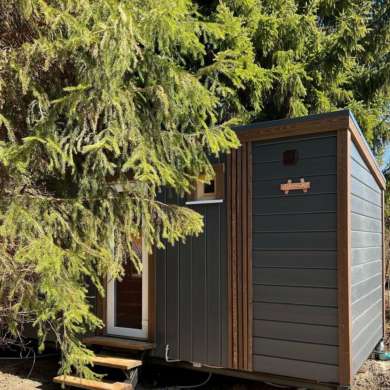 Добраться до Dom-v-lesu можно на личном автомобиле или такси.