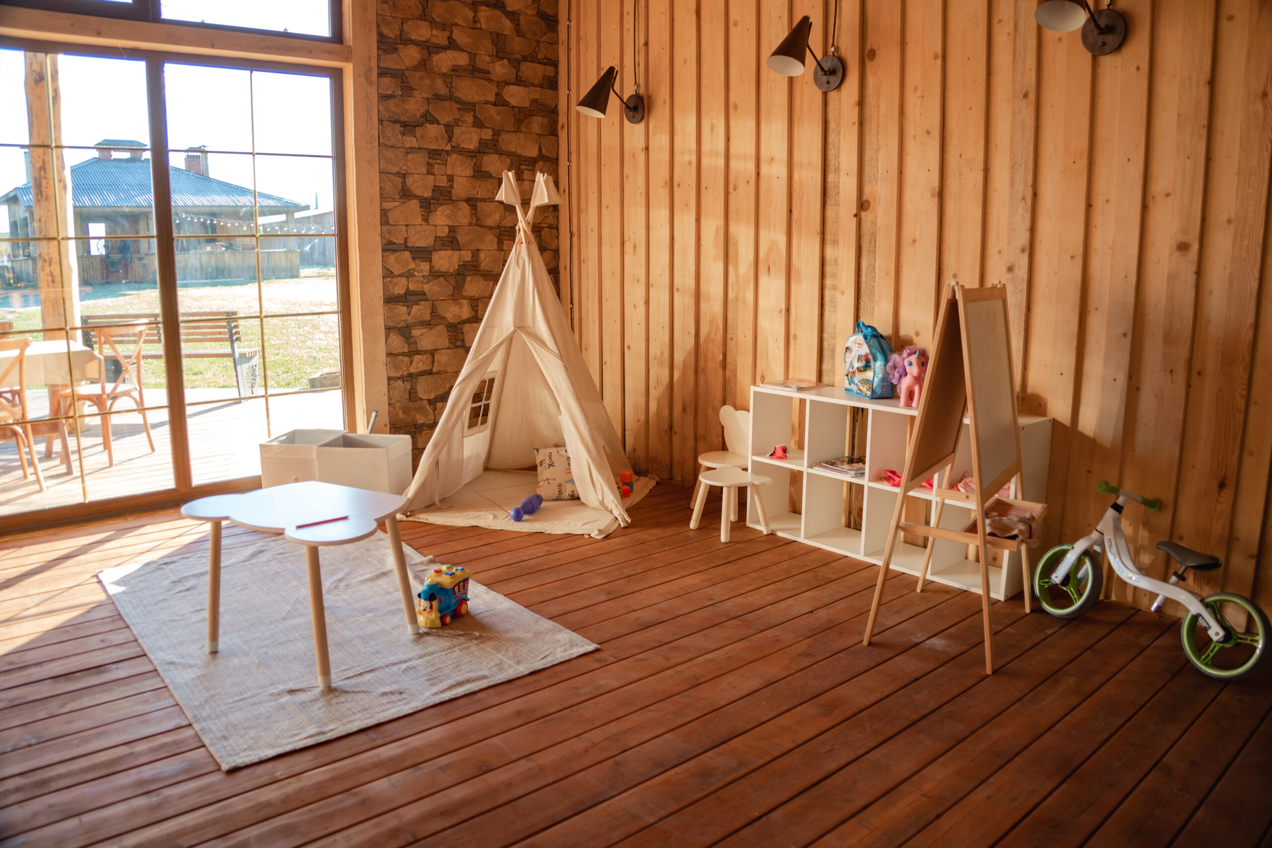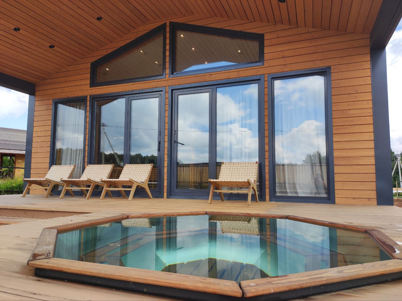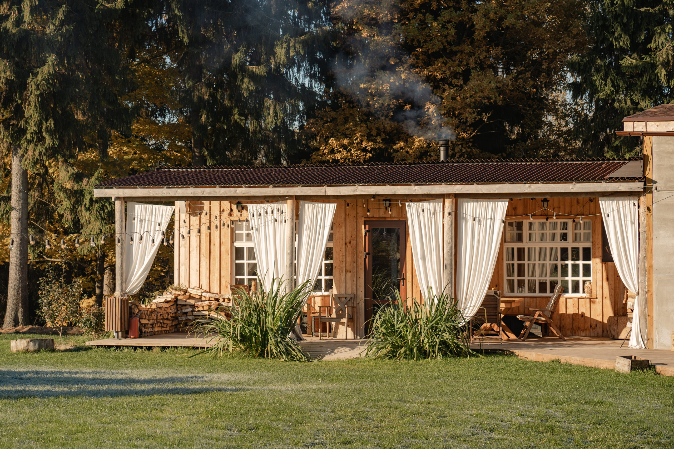Первый в России экологический отель на деревьях: стволы проходят прямо внутри панорамных веранд домов. Коттеджи находятся на высоте от 2,5 до 7 метров над уровнем земли на природной возвышенности.