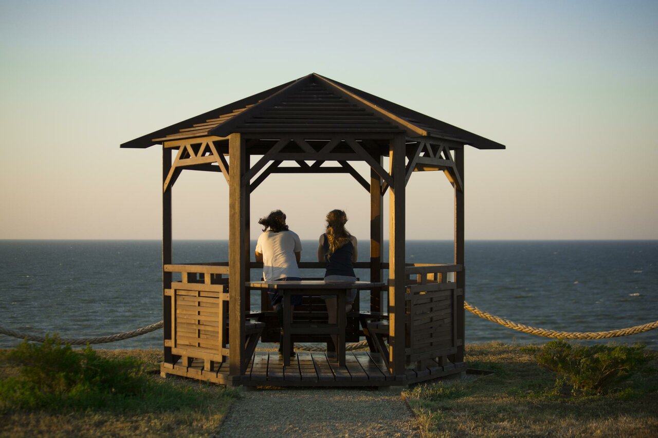 Предлагается аренда двухэтажных коттеджей площадью 250 м. Коттеджи вмещают до 8 человек. В комнатах есть спальные места, шкафы, рабочая зона, общая душевая с косметическими принадлежностями. Кухня оснащена бытовой техникой и посудой: плитой с духовкой, микроволновой печью, холодильником, мультиваркой, тостером, чайником, посудомоечной машиной. В доме есть скоростной Wi-Fi. Предоставляется парковка. На охраняемой территории есть теннисный корт, беседки, спортивный комплекс, детская площадка, удобный спуск к морю. Для детей предоставляются кроватка, высокий стул, стульчик для кормления. Возможно размещение с животными с ограничениями. Рядом находятся центральный пляж, набережная Паралия, грязевой вулкан Тиздар, страусиная ферма, палеолитическая стоянка древнего человека.
