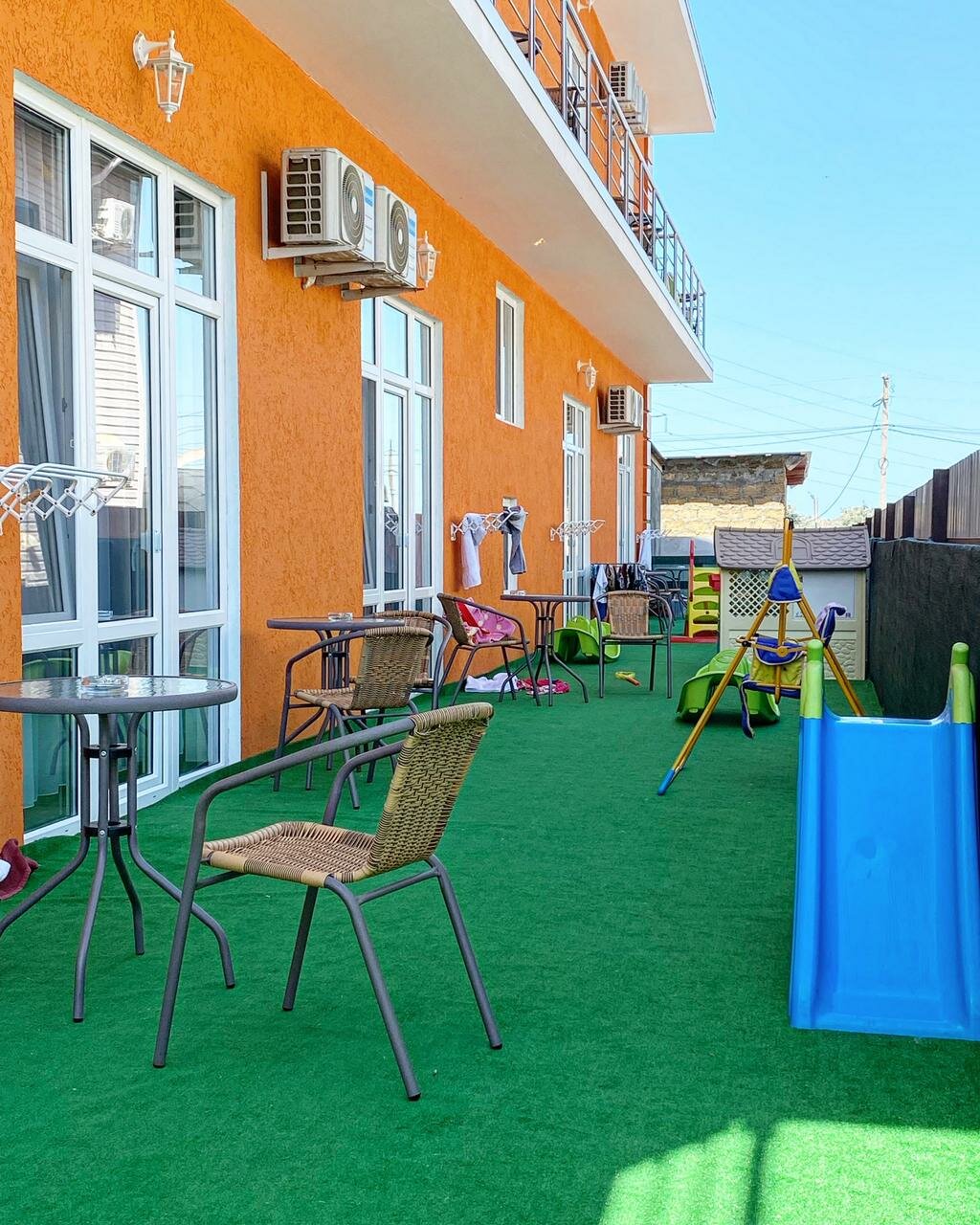 Гостевой дом «Патрида» предлагает комфортабельные номера с бесплатным Wi-Fi, кондиционером, телевизором, холодильником, чайником, санузлом с душем и феном. В номере есть балкон со столиком, стульями и сушилкой для одежды. На территории — бесплатная парковка, беседки, мангалы, детская площадка, кухня с бытовой техникой и посудой. Есть прачечная и гладильные доски с утюгом на каждом этаже. Предоставляется услуга трансфера по договорённости. Заезд после 14:00, выезд до 12:00. Возможно размещение с детьми, но не с животными. Рядом — чистый обустроенный пляж, магазины, столовые, небольшой рынок со свежими овощами и фруктами. Недалеко находится Сакское розовое солёное озеро. Также поблизости — музей Кара-Тобе с руинами древней крепости и археологическими находками, испытательный полигон «НИТКА», где иногда можно увидеть тренировочные полёты истребителей, набережная Новофёдоровки с пляжными кафе, детскими площадками и аттракционами.