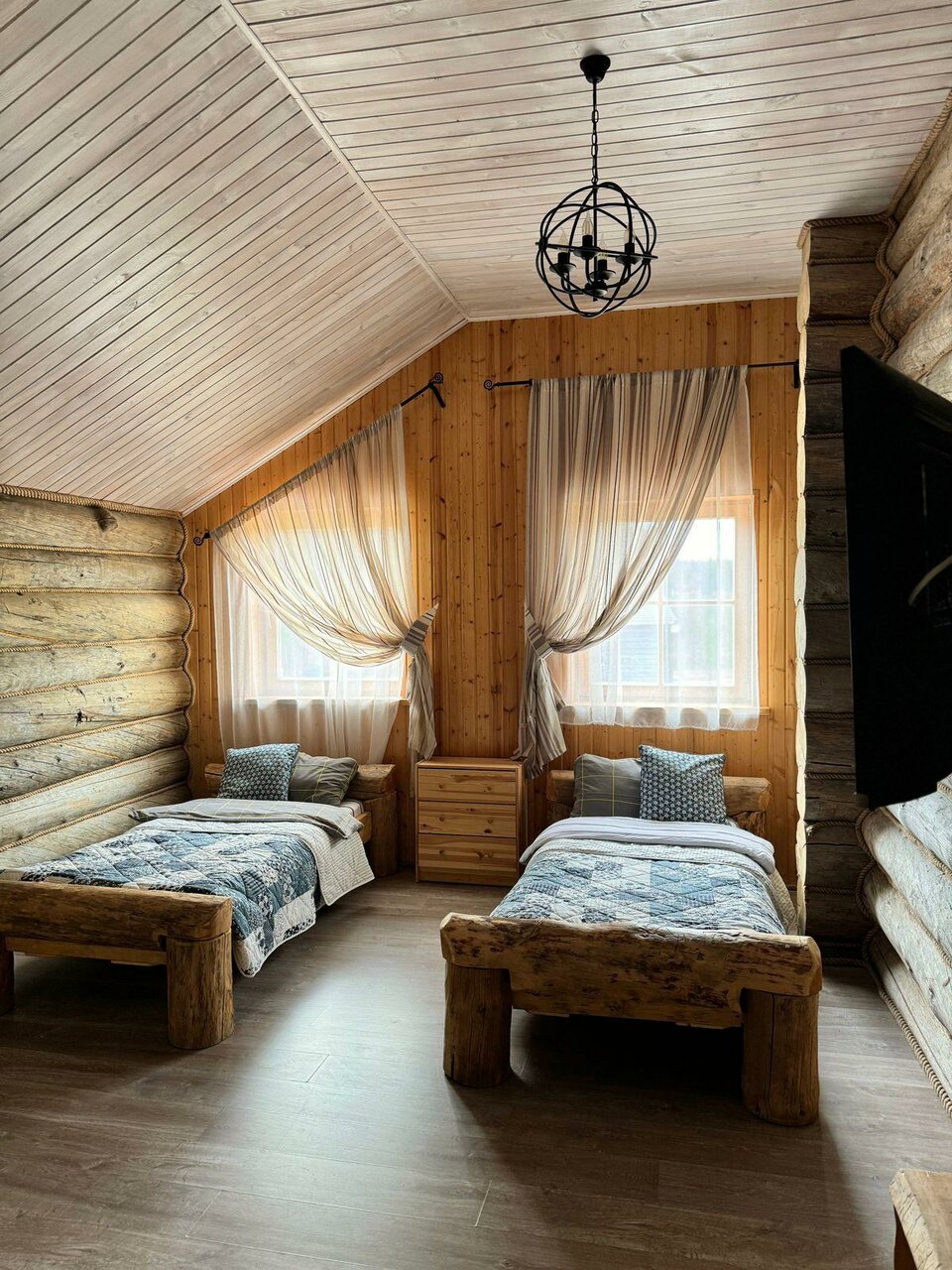 В парке-отеле вас встретят 7 уютных деревянных коттеджей и гостиничный корпус, окруженные красотой карельской природы. Каждый коттедж оборудован всем необходимым для длительного проживания: удобной ванной комнатой, кухней с варочной панелью и необходимой техникой. В некоторых домах есть собственная сауна, а в номерах — телевизор, фен, электрический чайник и набор косметических принадлежностей.