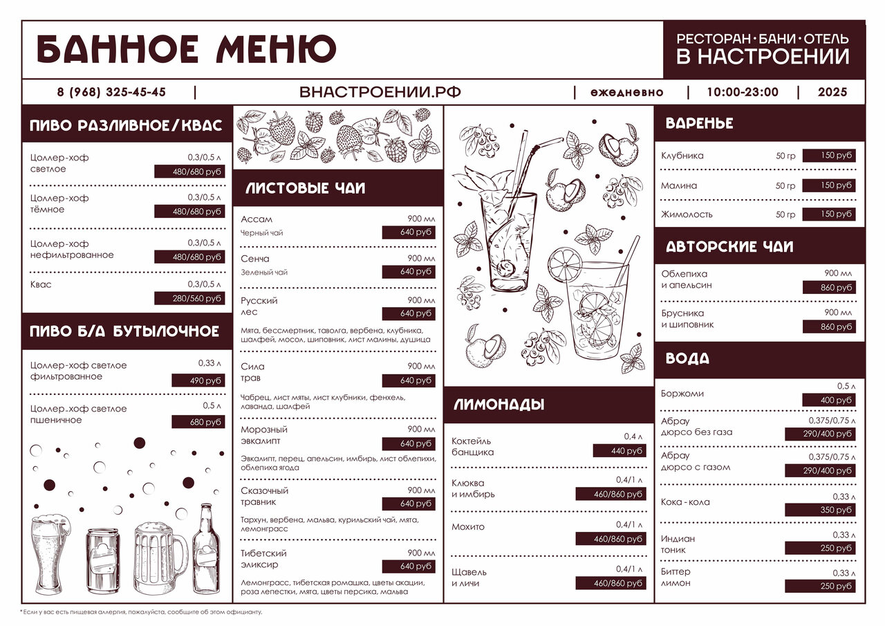 Стоимость проживания в В Настроении включает основные удобства, указанные в описании: проживание, базовые удобства (постельное бельё, полотенца и т.п.). Некоторые объекты также включают питание, баню или активности — подробнее смотрите на странице конкретного предложения.