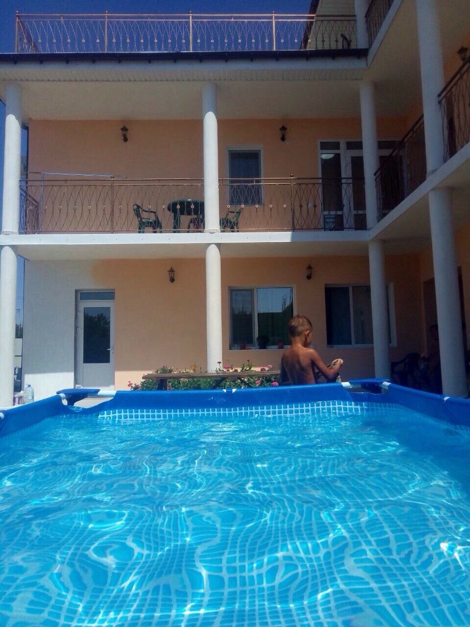 Гостевой дом «Восточный дворик» предлагает номера с современной отделкой, новой мебелью, сплит-системами, телевидением и беспроводным интернетом. В номерах есть санузел с душем и холодильник. На третьем этаже — терраса с видом на озеро и море. Есть бассейн под открытым небом, парковка (платная и бесплатная), общая кухня и обеденная зона. Можно заказать питание от профессионального повара или воспользоваться местом для пикника. Предоставляется прокат велосипедов и пляжного инвентаря, есть гладильные принадлежности. Возможно размещение с животными (по согласованию). Время заезда — с 14:00, выезда — до 12:00. Рядом — дикий пляж, подходящий для пеших прогулок. На территории гостевого дома — ухоженная территория с цветами, фруктами и беседками. В Новофёдоровке есть развлекательные и культурные места: набережная с кафе и магазинами, развлекательный комплекс «Палуба» с рестораном, бассейнами и открытым кинотеатром, аллея Героев — сквер, посвящённый лётчикам Черноморского флота.