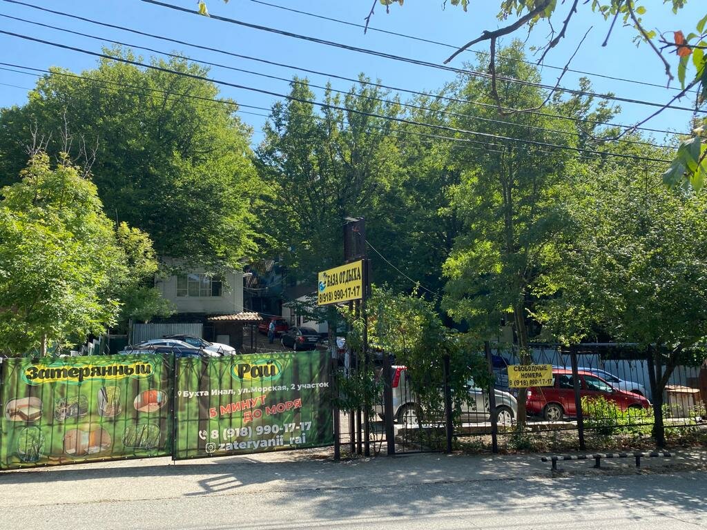 База отдыха «Затерянный рай» предлагает размещение в домиках с телевизором, холодильником и спальными местами. На территории есть круглосуточное водоснабжение, общие санузел и душевые. Предоставляются Wi-Fi, бесплатная парковка, мангальная зона. Для детей есть батут и качели. У каждого домика — веранда со столами и стульями. Вокруг много зелени, гамаков и подвесных кресел. До моря — 5 минут пешком.