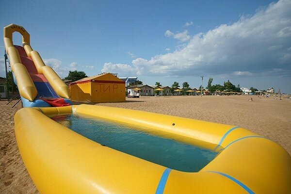 Туристическо-оздоровительный комплекс «Золотой пляж» предлагает проживание в стандартном корпусе, деревянных и каменных домиках. На территории комплекса работают рестораны, бары и кафе. Для развлечения доступны прокат спортивного инвентаря, настольный теннис, пляжный волейбол, анимационные представления, экскурсии и ночной клуб. В комплексе есть телефон с междугородней связью, экскурсионное бюро, бильярд, дискотека, библиотека, медпункт. Предоставляется бесплатный Wi-Fi на всей территории. Пляж находится в шаговой доступности. Рядом расположены магазины, рынок, кафе и аптеки. Предлагается питание по системе «шведский стол»: завтрак, двухразовое или трёхразовое питание. Для детей доступен буфет с коктейлями и мороженым.